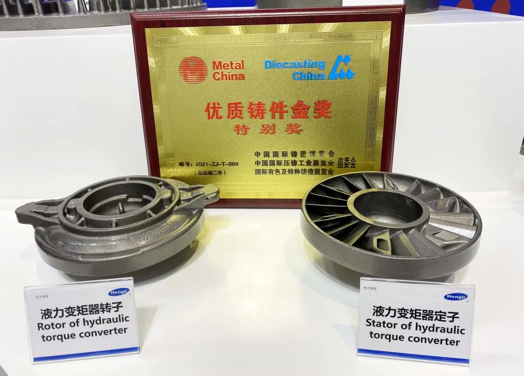 液力变矩器转子、定子产品神似“风火轮”的造型,一经展示,便引来了众人的关注与探讨。该产品凭借领先技术、卓越品质以及重大意义获得了组委会颁发的优质铸件金奖-特别奖。